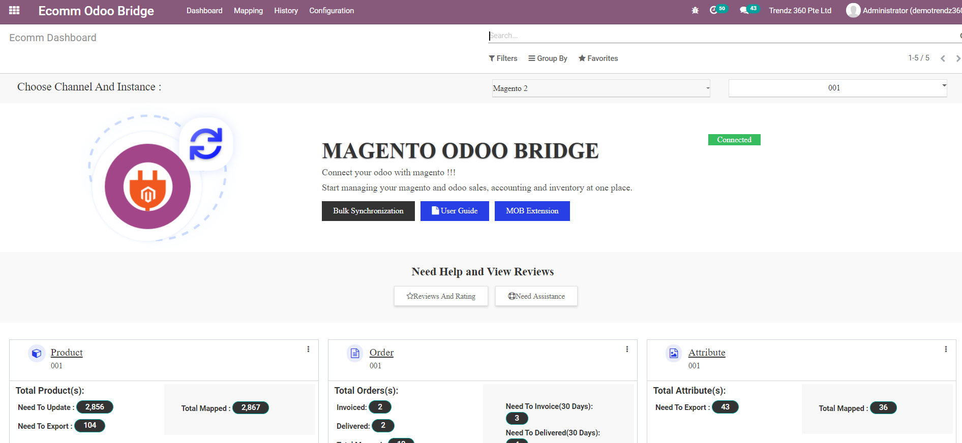 Các sản phẩm của MBT đều được quản lý trên cơ sở dữ liệu Odoo. Đầu tiên, một sản phẩm được tạo và sau đó được đồng bộ hóa với tất cả các trang web Magento. Mọi cập nhật liên quan đến sản phẩm đều được chăm sóc từ chương trình phụ trợ của Odoo.