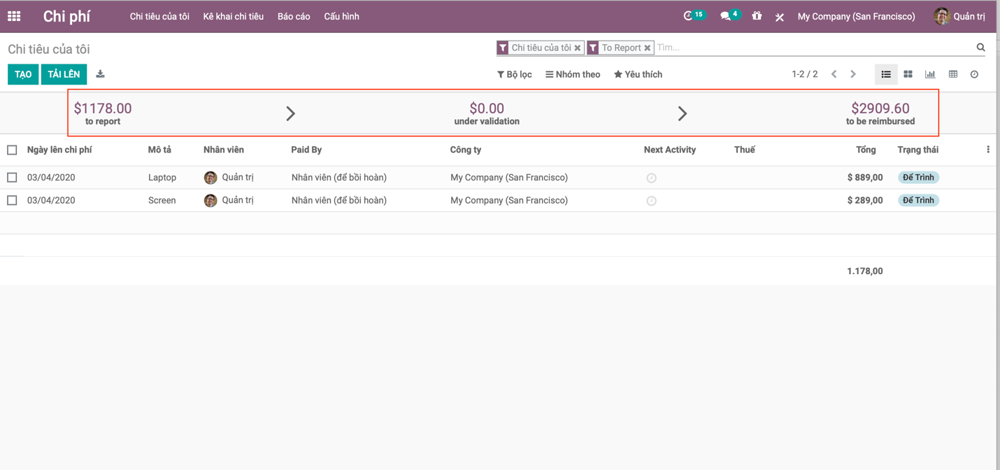 Các trạng thái của yêu cầu báo giá cũng được Odoo thêm màu sắc để người dùng dễ dàng phân biệt hơn.