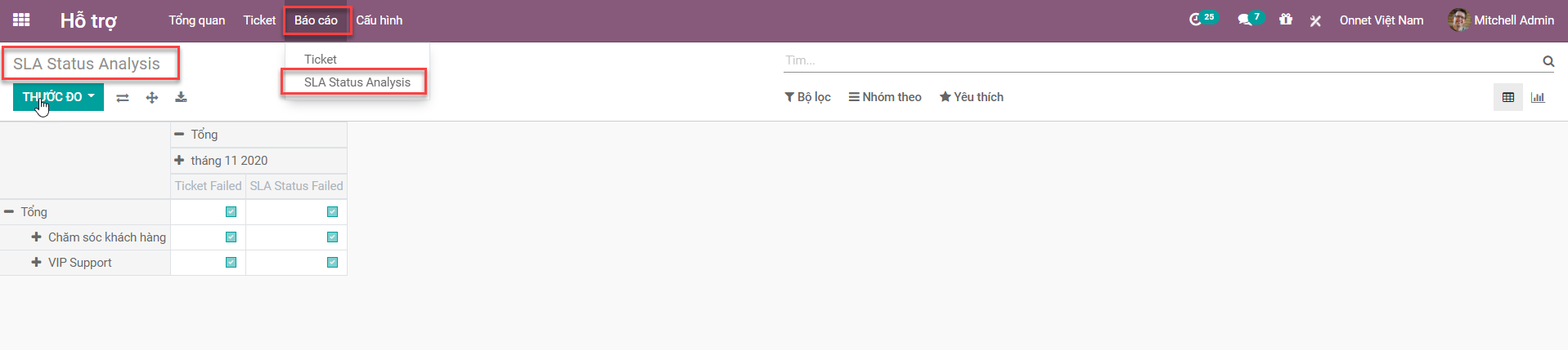 Hỗ trợ -> Báo cáo -> SLA Status Analysis