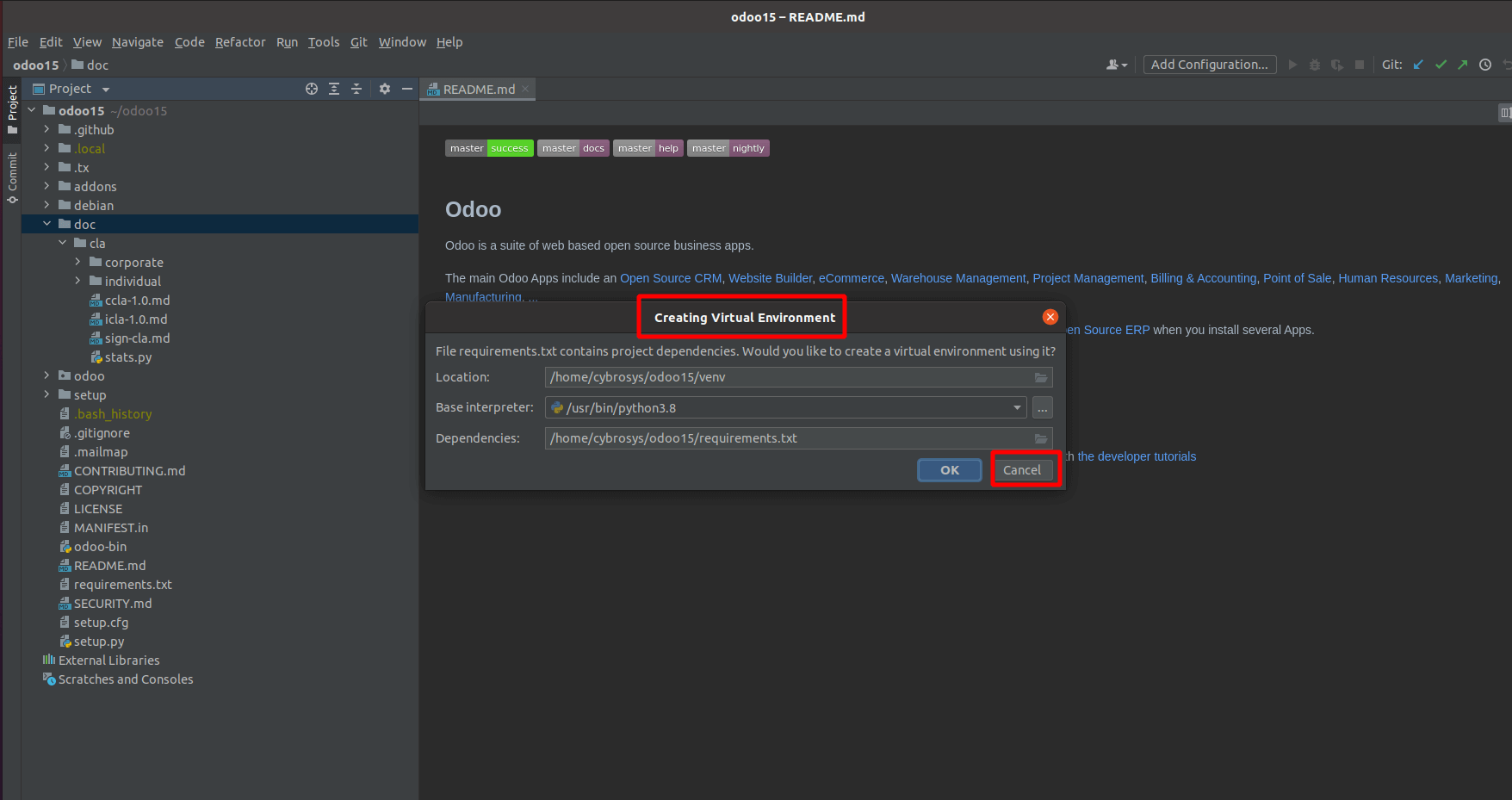 Cài đặt môi trường phát triển Odoo 15 Sử dụng Pycharm trong Ubuntu 20.