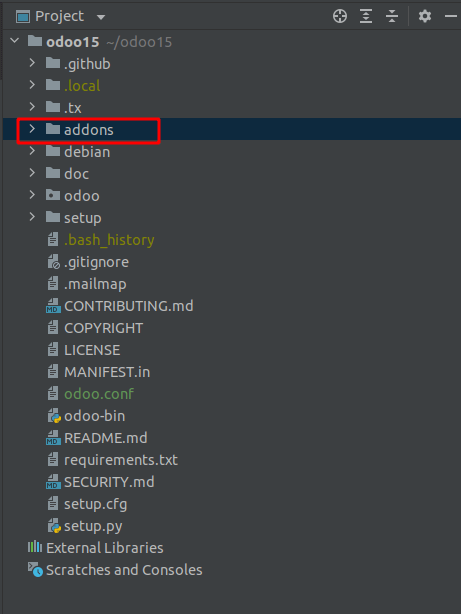 Odoo yêu cầu cài đặt một số gói python, được liệt kê trong tệp request.txt bên trong thư mục odoo15.