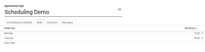 Odoo cung cấp cho bạn mô-đun lên lịch hẹn với Odoo tốt nhất để quản lý tất cả các cuộc hẹn của bạn bằng cách tự động hóa các quy trình lập lịch. Người dùng có thể sắp xếp các cuộc hẹn của họ một cách thuận tiện bằng cách sử dụng mô-đun này. Ngoài các hệ thống đặt chỗ truyền thống với số lượng lớn cuộc gọi và email để đặt chỗ, Odoo giảm bớt căng thẳng bằng cách giới thiệu hệ thống quản lý cuộc hẹn tự động.
