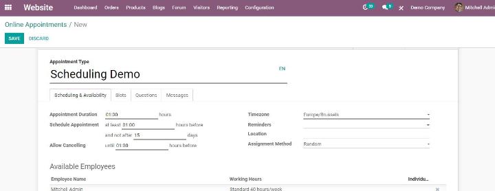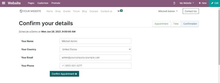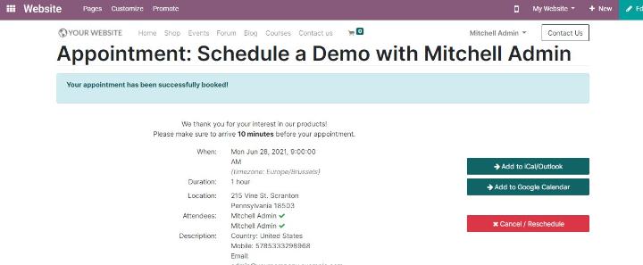 Hướng dẫn cách lên lịch hẹn với Odoo 14