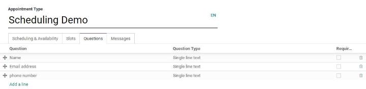 Trong khi tạo một cuộc hẹn, nếu bạn muốn đặt một số câu hỏi cho khách hàng của mình như tên, địa chỉ email, thông tin liên hệ và chi tiết công việc, bạn có thể đưa chúng vào trường này.