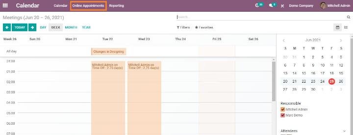 Bạn cũng được phép sử dụng mô-đun lịch để lên lịch các cuộc hẹn mới. Nhấp vào cuộc hẹn trực tuyến từ thanh menu sẽ đưa bạn đến trang tạo cuộc hẹn.