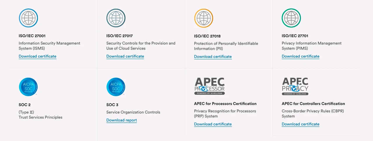 Slack cũng đã đạt được một loạt các chứng nhận tương tự: