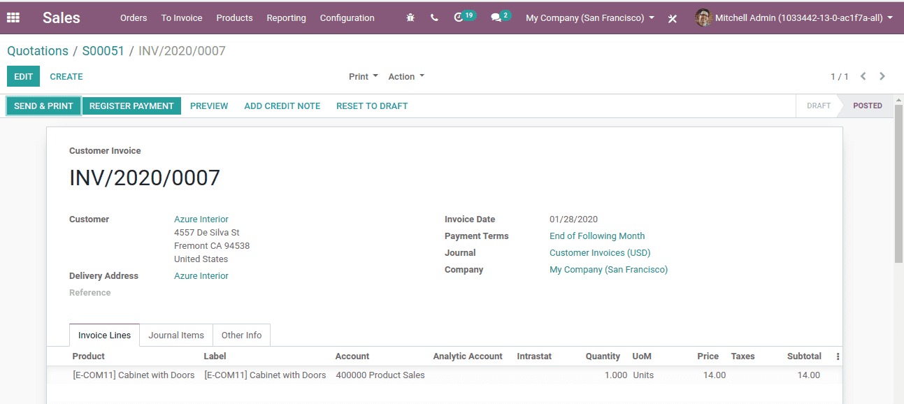 Trong hình minh họa ở trên, có thể thấy chúng ta đang bán một sản phẩm cho khách hàng với giá 14%. Khách hàng đã nhận hàng cùng với hóa đơn và thanh toán.
