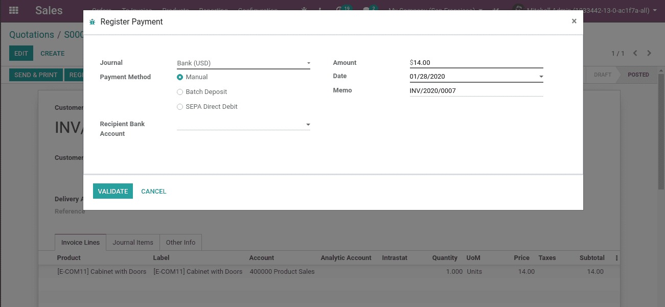Bên cạnh đó, Odoo Accounting cho phép doanh nghiệp tích hợp các phương thức thanh toán điện tử để phục vụ việc thu, chi trực tuyến.