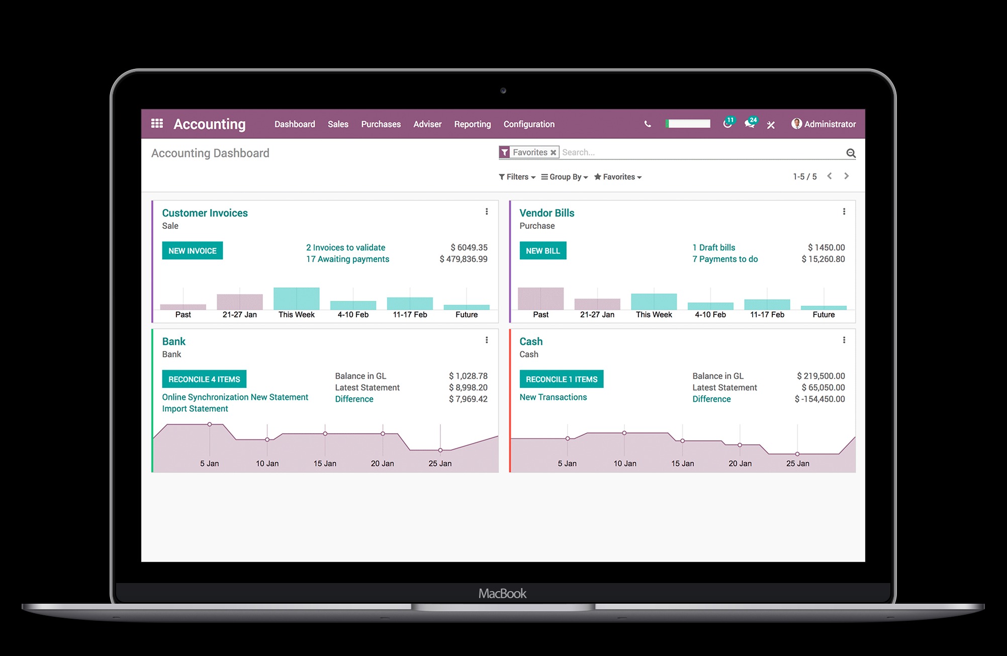 Odoo Accounting là phân hệ kế toán được nhà phát triển tích hợp trong phần mềm Odoo ERP. Module Accounting của Odoo cung cấp giải pháp tổng thể cho kế toán doanh nghiệp, đáp ứng mọi nghiệp vụ từ cơ bản đến nâng cao. Giúp doanh nghiệp theo dõi, thống kê và báo cáo tài chính nhanh gọn, minh bạch trên một nền tảng duy nhất.