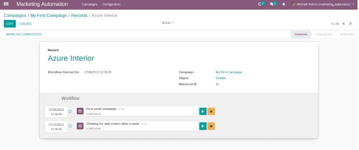 • Doanh nghiệp có thể xem một ví dụ đơn giản để kiểm tra cách tự động hóa tiếp thị hoạt động trong Odoo.