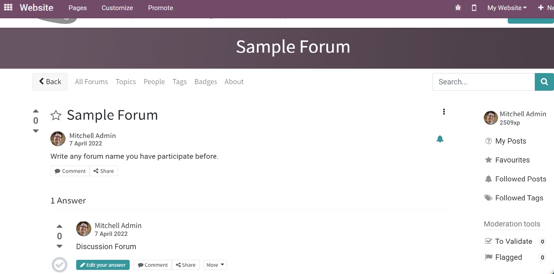 Một số tính năng tuyệt vời của việc sử dụng forum trên Odoo web builder: