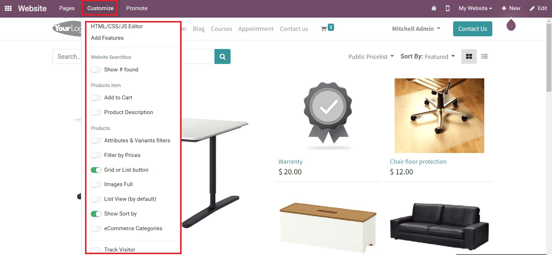 Với sự trợ giúp của mô-đun này, bạn sẽ có thể thiết lập một cửa hàng trực tuyến hiện đại và hoàn chỉnh trong một thời gian ngắn. Odoo Website Builder cho bạn biết về một số đặc điểm của nó: