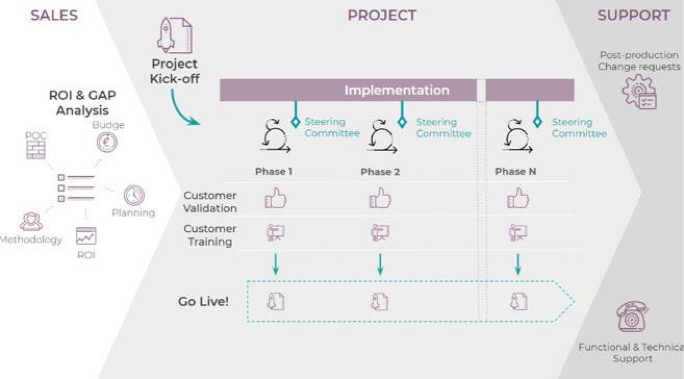 Chúng tôi tin rằng việc bán nhiều hơn không bao giờ nên là mục tiêu ban đầu. Sự phát triển của công ty phải là kết quả của một dịch vụ chất lượng hoặc của những khách hàng hài lòng (lý tưởng là cả hai). Chúng tôi thực sự nghĩ rằng tốt hơn nên triển khai khách hàng trong ít ngày làm việc hơn. Việc này không chỉ làm giảm nguy cơ thất bại của dự án mà còn giúp cạnh tranh tốt hơn trên thị trường.