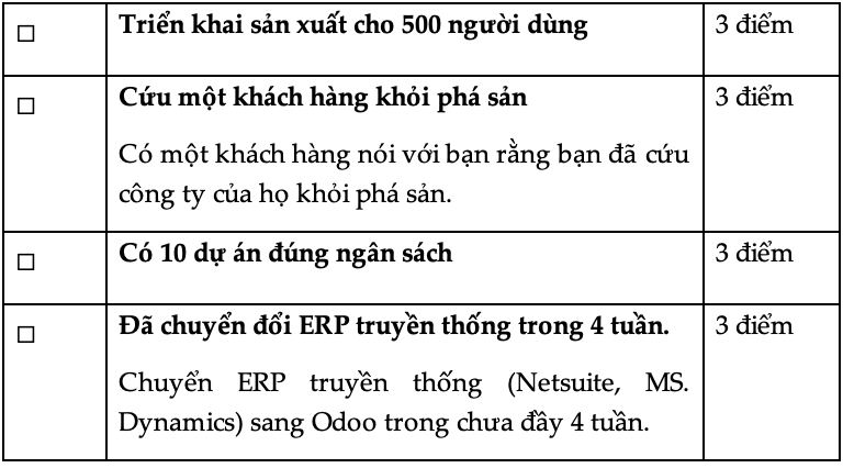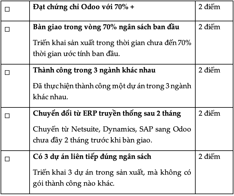 # Điểm/Năm kinh nghiệm @ Odoo
