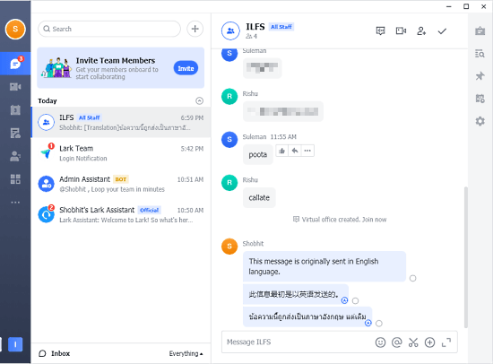 Lark có giao diện rõ ràng và đơn giản, dễ sử dụng và điều hướng. Nó có thiết kế tối giản và rất dễ bắt đầu. Với thiết kế gọn gàng và tối giản, Lark giúp bạn dễ dàng sử dụng và điều hướng. Giao diện của nó được tổ chức thành ba phần chính: giao diện nhắn tin, thanh bên và thanh điều hướng trên cùng. Giao diện nhắn tin đơn giản và trực quan với cửa sổ trò chuyện hiển thị tất cả các cuộc hội thoại ở một nơi. Thanh bên hiển thị danh sách các cuộc hội thoại và liên hệ, có thể dễ dàng lọc và tìm kiếm. Thanh điều hướng trên cùng cung cấp quyền truy cập nhanh vào các tính năng quan trọng như cuộc gọi video, lịch và tác vụ.