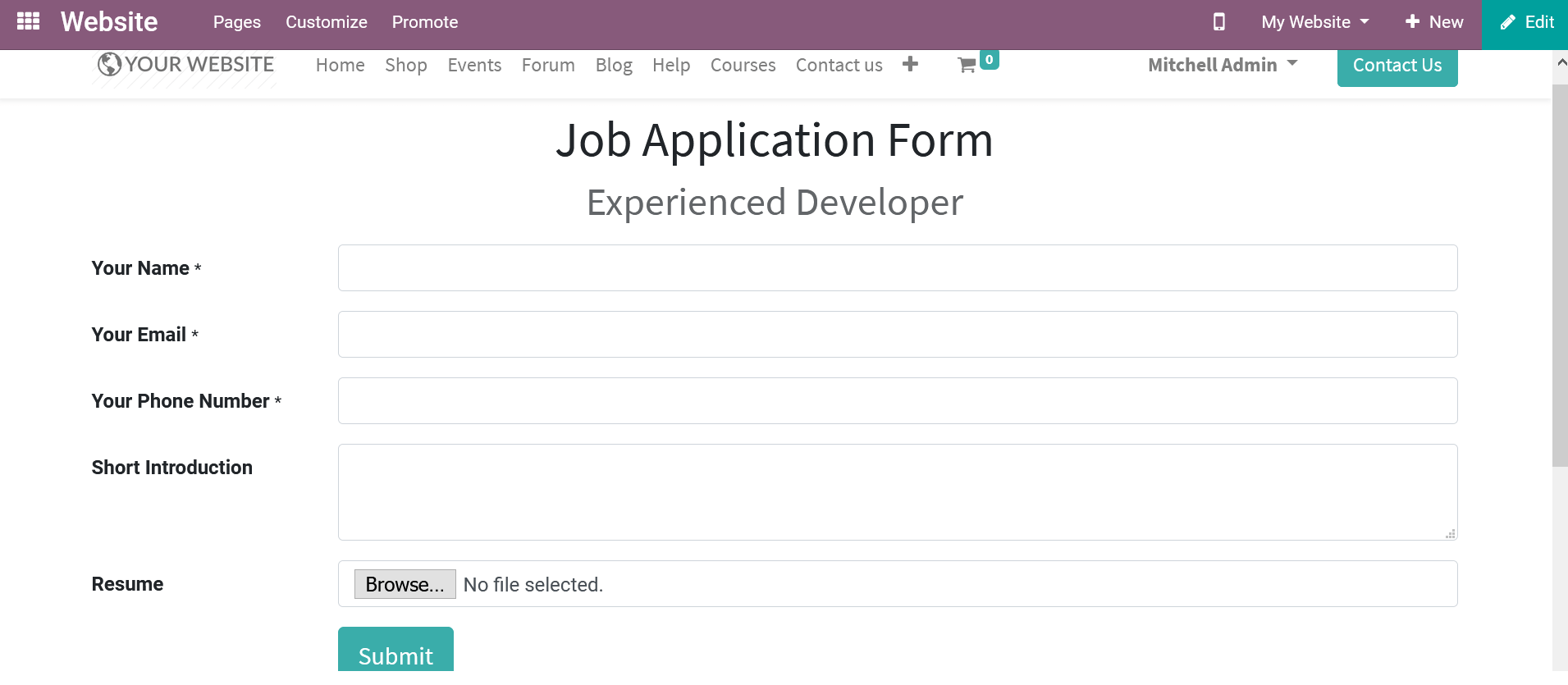 Tất cả các mục đích và hoạt động tuyển dụng đều được thực hiện trực tuyến bằng nền tảng Odoo bằng cách sử dụng các công cụ được cấu hình khác nhau và các tùy chọn chức năng có sẵn trong chính Odoo ERP.