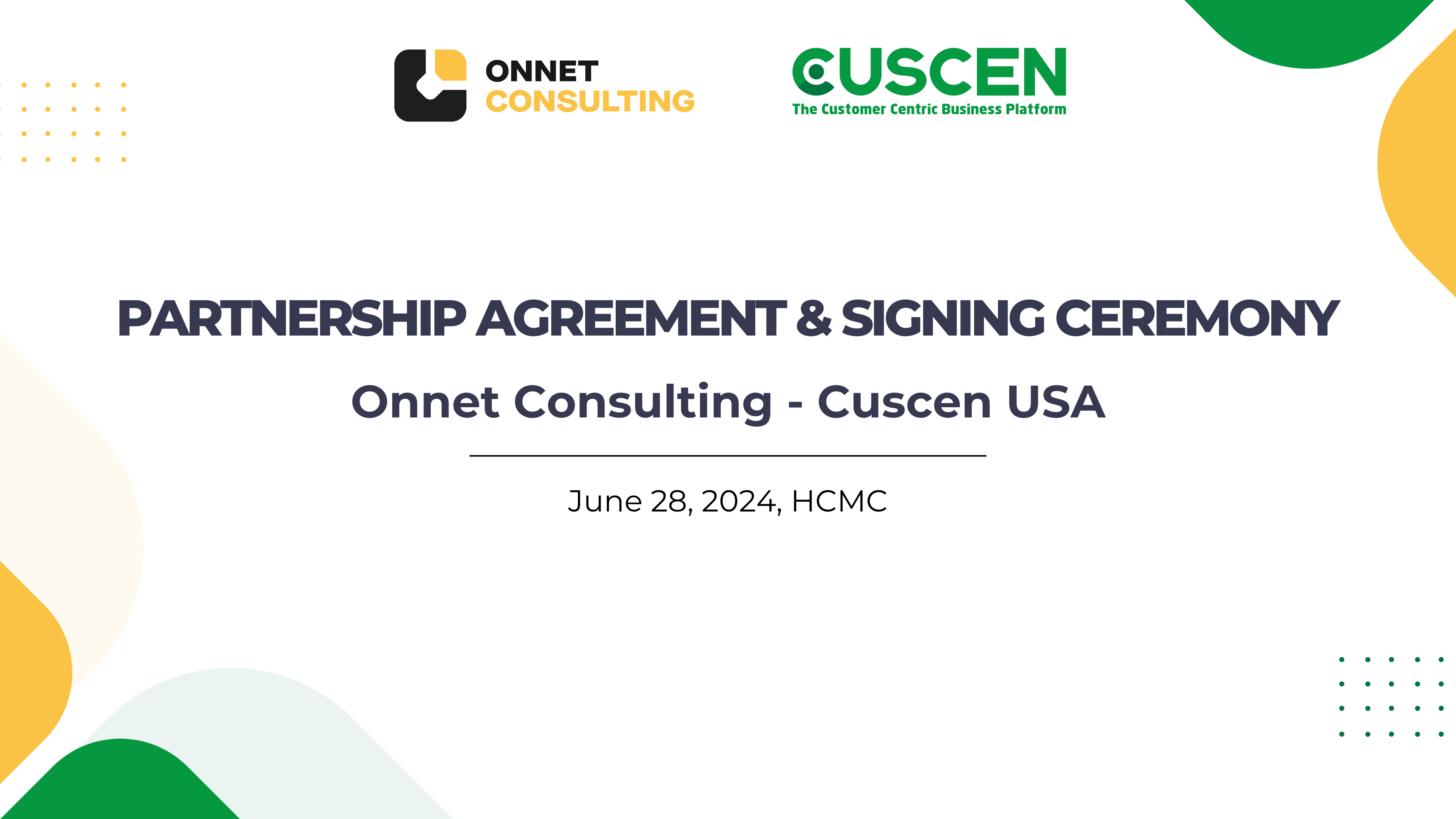 Tp. Hồ Chí Minh, Việt Nam, ngày 28 tháng 6 năm 2024 - Onnet Consulting đã chính thức ký kết thỏa thuận hợp tác chiến lược với Cuscen USA, sự kết hợp này hứa hẹn mang đến cho khách hàng một giải pháp ERP toàn diện, giúp doanh nghiệp tối ưu hóa quy trình vận hành, tăng cường năng lực quản trị và giảm thiểu chi phí.