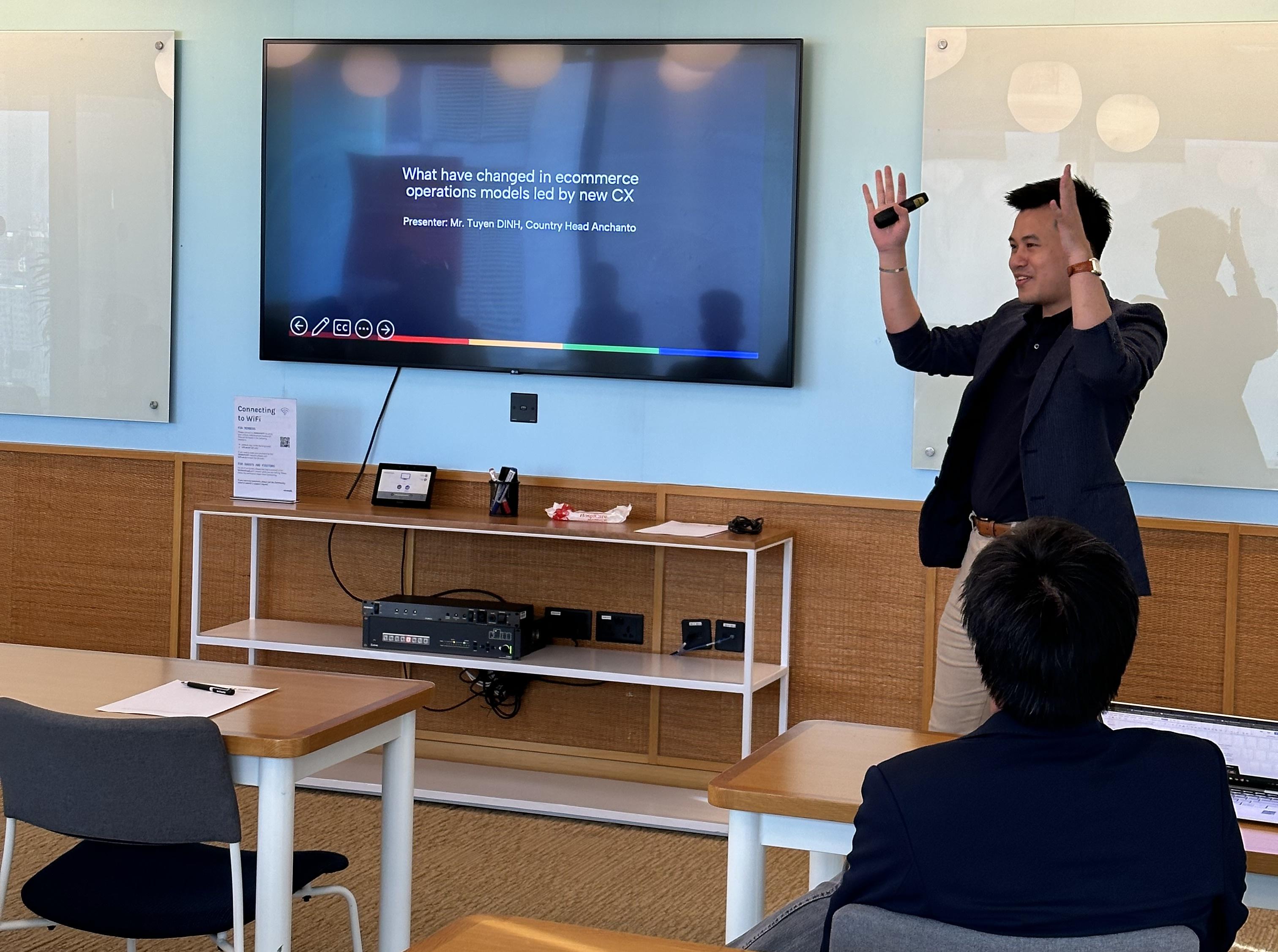 Tiếp sau đó, Mr. Tuyền Đinh ( Country Head của Anchanto) đã cùng thảo luận về sự thay đổi hành vi mua sắm của khách hàng đã tác động tới các mô hình vận hành thương mại điện tử hiện đại và việc tối ưu hoá hàng tồn kho trong vận hành bán lẻ đa kênh.