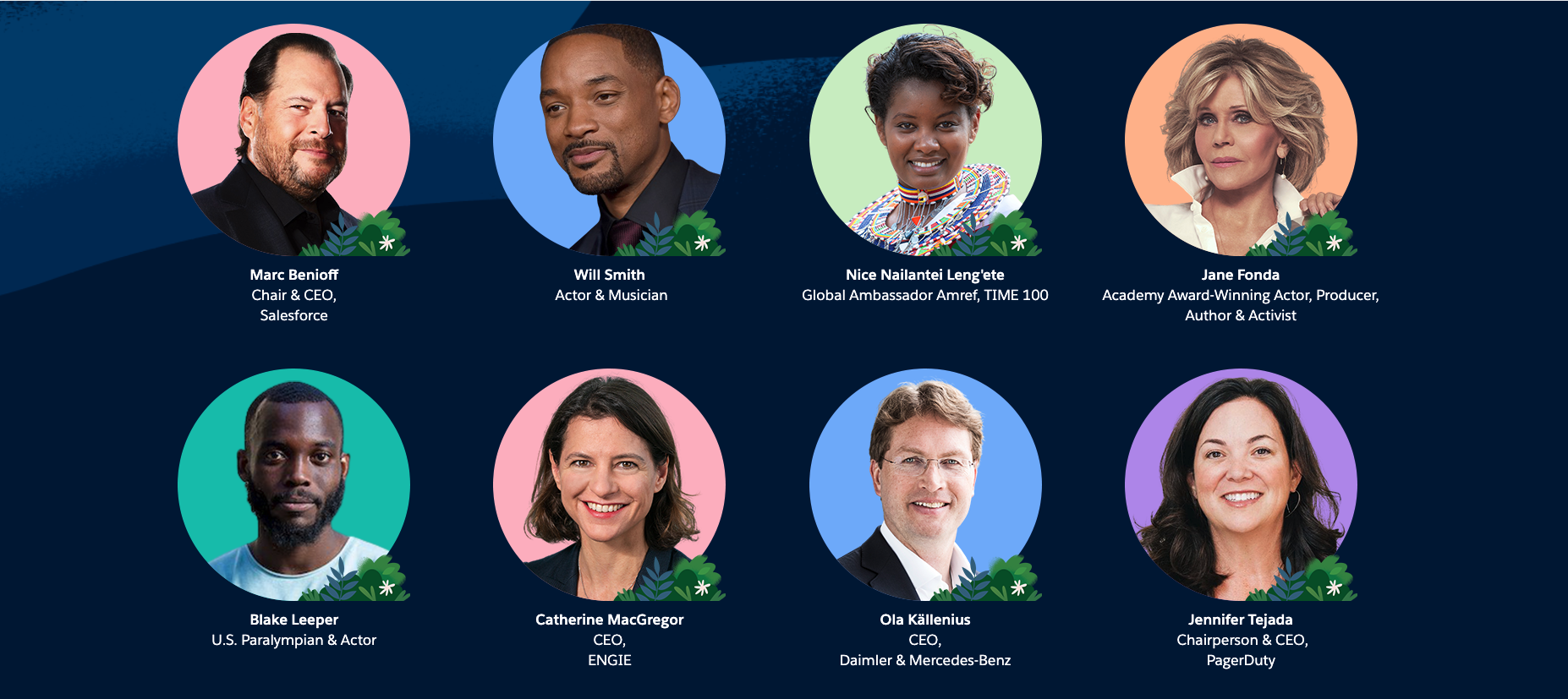 Năm nay, Dreamforce sẽ có sự tham gia của các diễn giả như Marc Benioff (Chủ tịch & Giám đốc điều hành, Salesforce), Will Smith (Diễn viên & Nhạc sĩ), Jane Fonda (Diễn viên đoạt giải Oscar, Nhà sản xuất, Tác giả & Nhà hoạt động), Ola Källenius (Giám đốc điều hành, Daimler & Mercedes-Benz), Jennifer Tejada (Chủ tịch kiêm Giám đốc điều hành, PagerDuty) và rất nhiều nhân vật nổi tiếng khác.