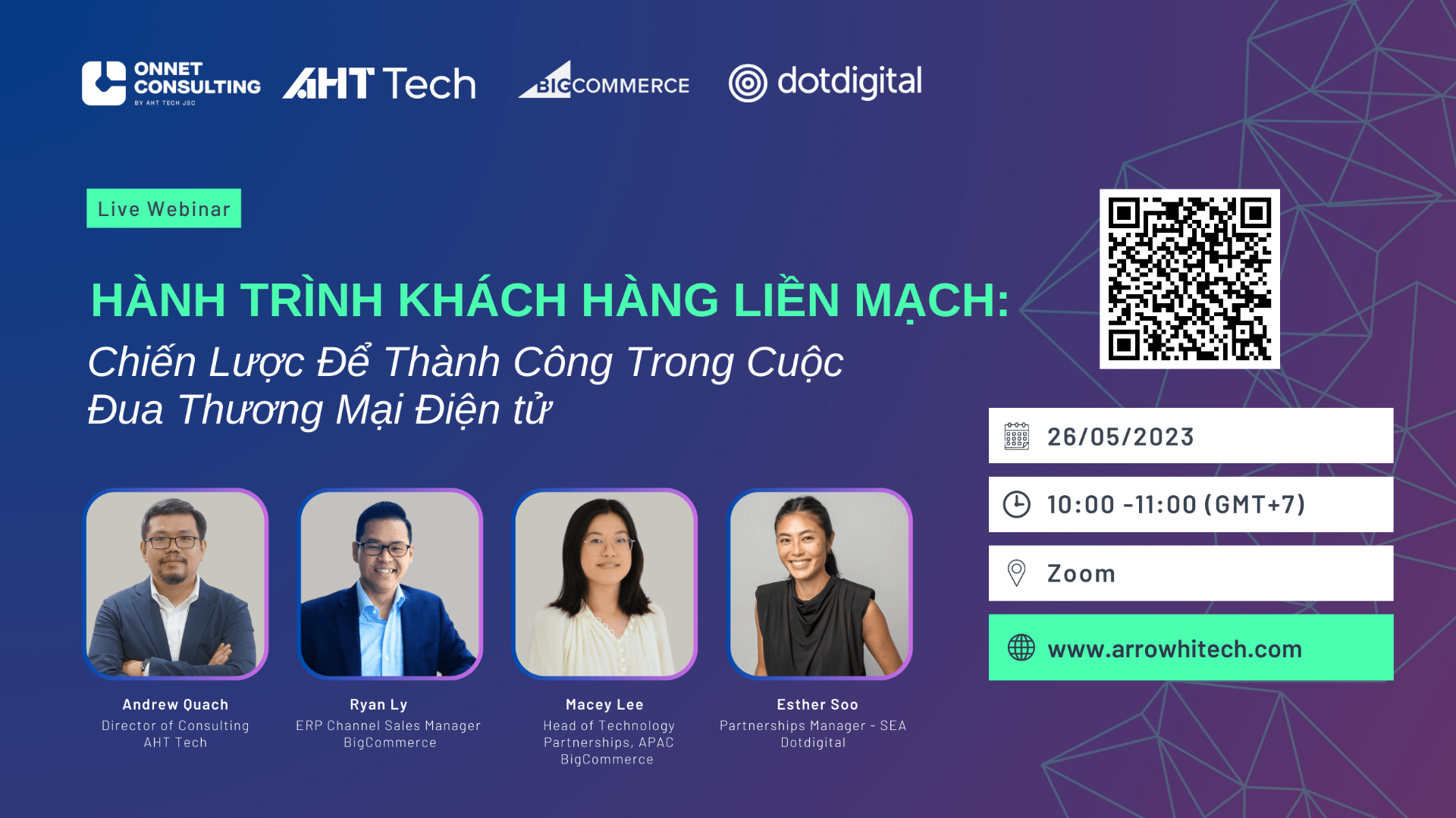 Webinar "Hành trình khách hàng liền mạch: Chiến lược cho thương mại điện tử thành công" do Onnet Consulting, BigCommerce và Dotdigital, nhằm cung cấp cho người tham dự những thông tin quý giá và chiến lược để tối ưu hóa hành trình khách hàng trong thương mại điện tử.